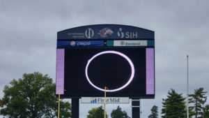 Brevik said the team tested some concepts and technology during the annular eclipse that hit the southwest United States on Oct. 14. During the test, the team placed several telescopes in the path of the annular eclipse and practiced pulling in live feeds and maintaining views of the event on the big screen on the north end of the football field and on SIU’s YouTube channel.